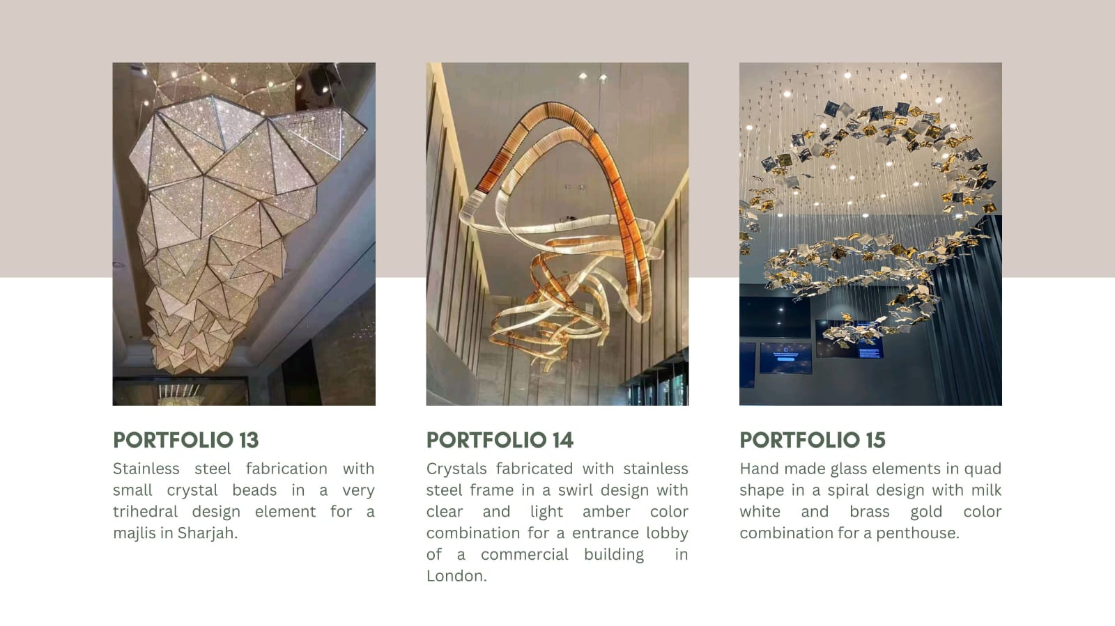 FIATLUX, as one of the leading manufacturer specializes in customized bespoke lighting with hand made glass crystal n objects, underground, outdoor and facade waterproof lighting fixtures & accessories. We work closely with architects, designers and engineers to understand their needs and provide tailored lighting solutions that enhances the aesthetic appeal of any space while minimizing energy consumption and reducing costs. Our team of expert designers are well updated with trendy designs and latest technologies to provide precise solutions that meets the needs of our esteem customers.