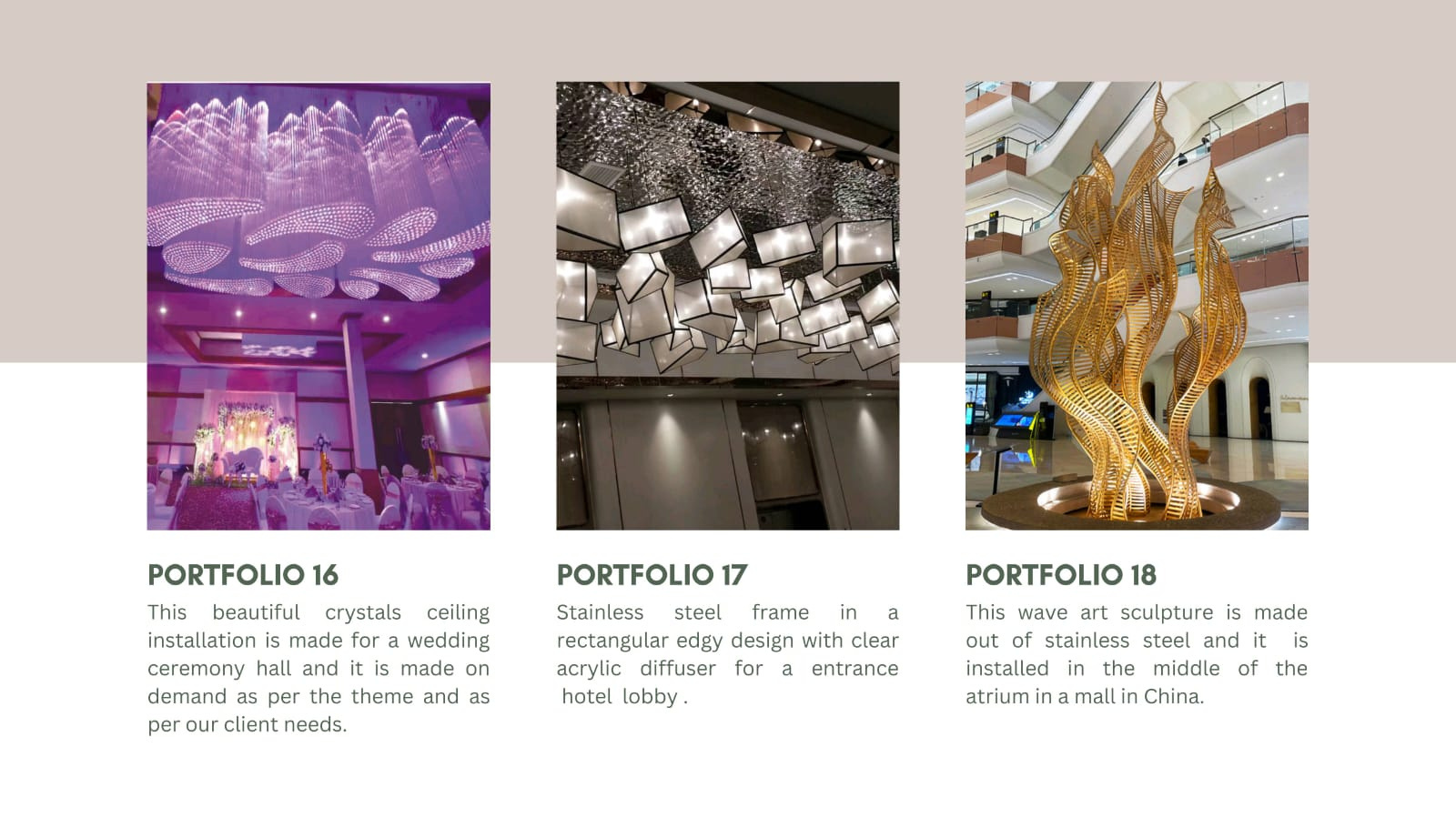 Our experienced team of professional designers will draft the plan, section drawings and 3d elevations with detailed layouts and precise specifications of each n every crystals & lights and then discuss with the clients or their respective designers and after getting approval then starts its production.